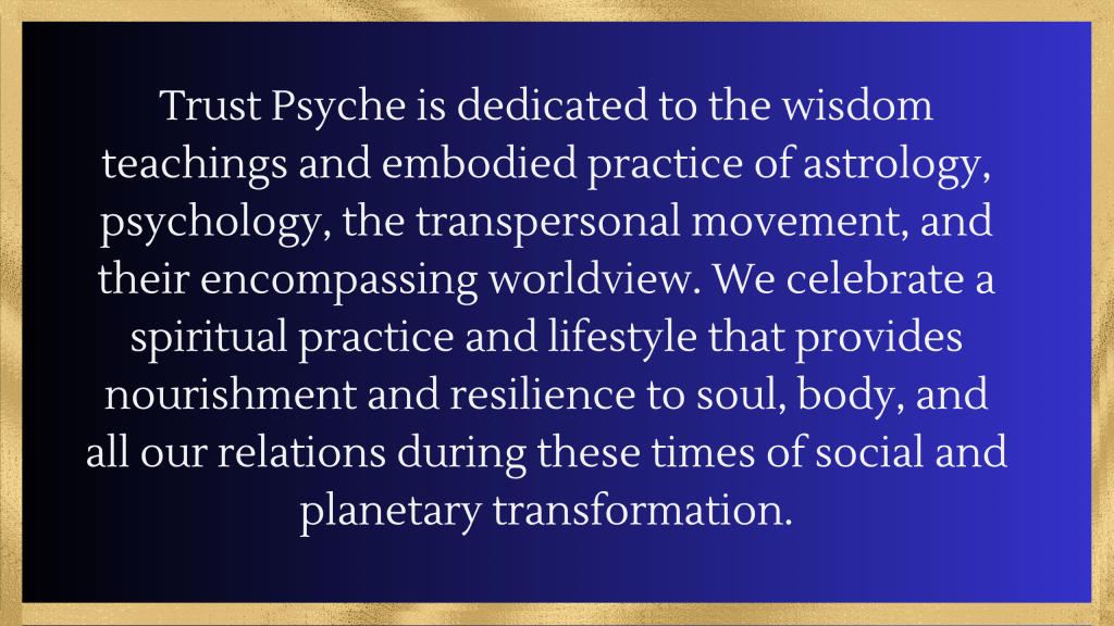 Welcome to Trust Psyche! We are Jessica DiRuzza, MFT and Travis DiRuzza, PhD. Trust Psyche is a celebration of the living cosmos and our place in it—a celebration of our interconnectedness as human beings embedded in a meaningful universe. Astrology awakens us to the deep patterning of cosmic relationship, while psychology grounds us in the embodied experience of human relationship. This participatory cosmology is both something to learn and something to live. We run an online school teaching archetypal astrology and depth psychology—in conjunction with philosophy, cultural history, and religion—to our beloved community from around the world. Our training and approach are both academic and clinical: in addition to courses, talks, and scholarship, we offer psychotherapy, professional consultation, astrology readings & mentoring, and counseling. We would love for you to come live astrology with us!
