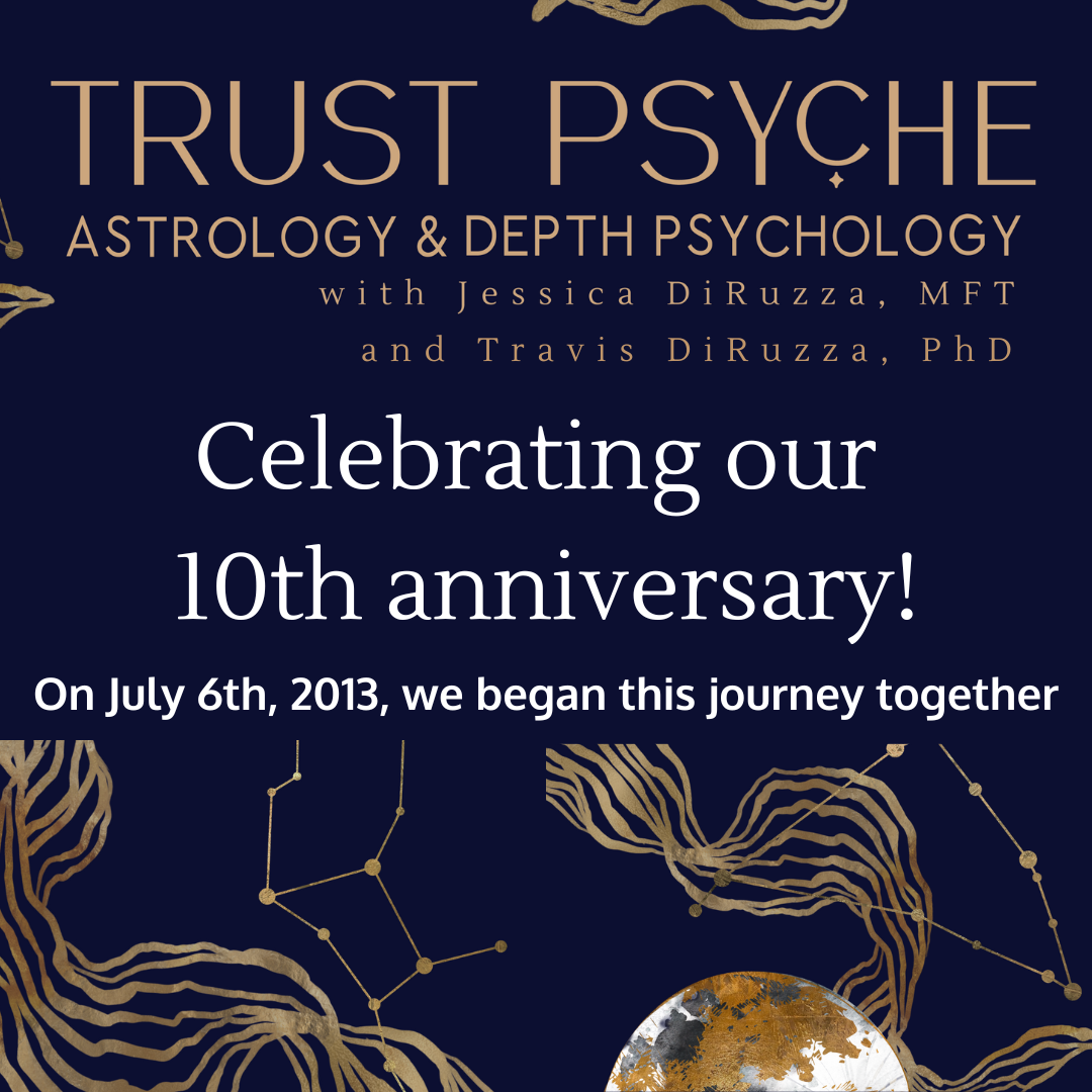 In episode 41, Jessica DiRuzza, MFT and Travis DiRuzza PhD share the origin story of Trust Psyche, which began in 2013––celebrating 10 years! and then move into dialogue about how to read a birth chart, inspired by the upcoming masterclass. Commemorating 40+ episodes of the Trust Psyche podcast! Read more and register here for the class!