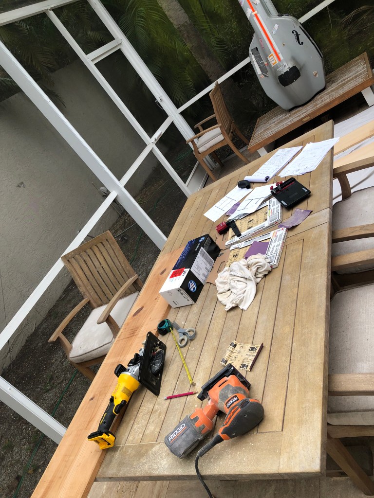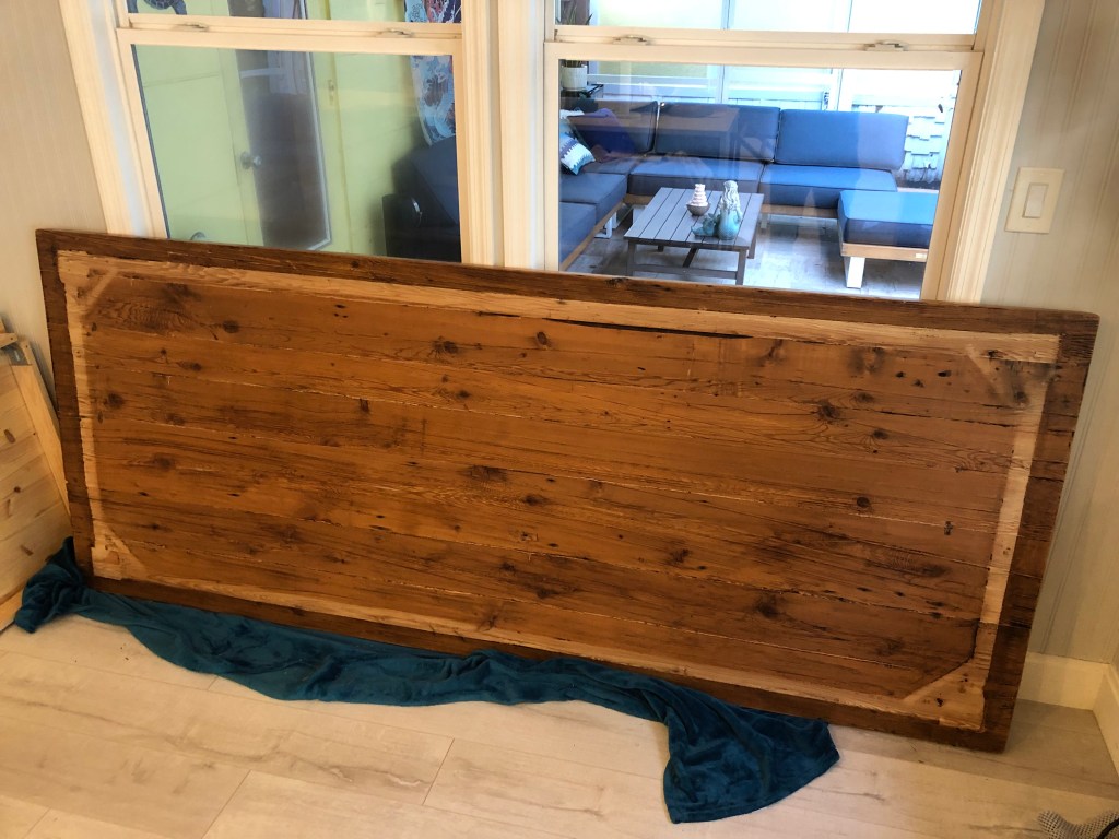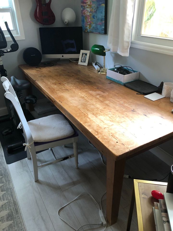 And while I’ve wanted to do this for some time, several circumstances conspired to bring it all to a head right now. I felt torn about needing to clear out this 8-foot long pine desk, a dining table really, that I wrote my dissertation on (pictured right). I’ve resisted getting rid of it because of its sentimental and energetic value–not to mention that I just love a giant solid wooden desk–but alas, it’s just too darn huge and won’t fit in my new office area anyway. I was having trouble nailing down a buyer when it dawned on me that I could repurpose it into a bookshelf rather than getting rid of it all together. I had some planks leftover from the other bookshelf. I made a few trips to Home Depot to get the remaining wood and tools necessary, and things are now underway.