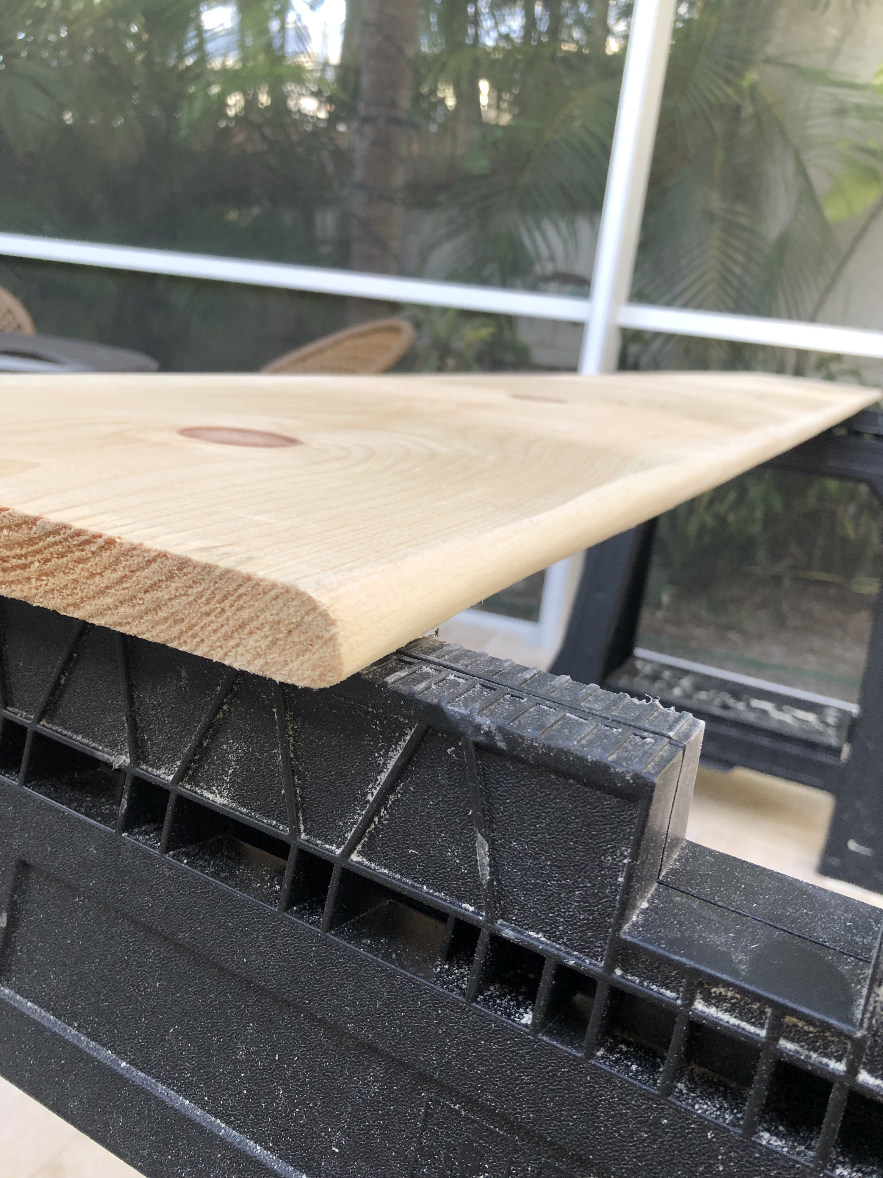 Next, I rounded out the raw edges of the thinner shelves using a sander.